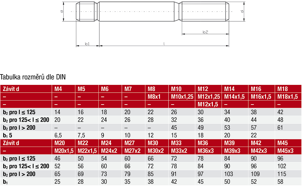 DIN 939 - Závrtné šrouby s délkou záběru 1,25 x d, Současná norma: DIN 939, Ekvivalentní normy: CSN 021176; PN 82131