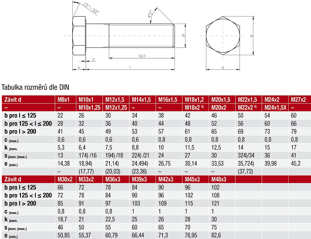 DIN 960 šroub šestihranný částečný závit - jemné stoupání DIN960