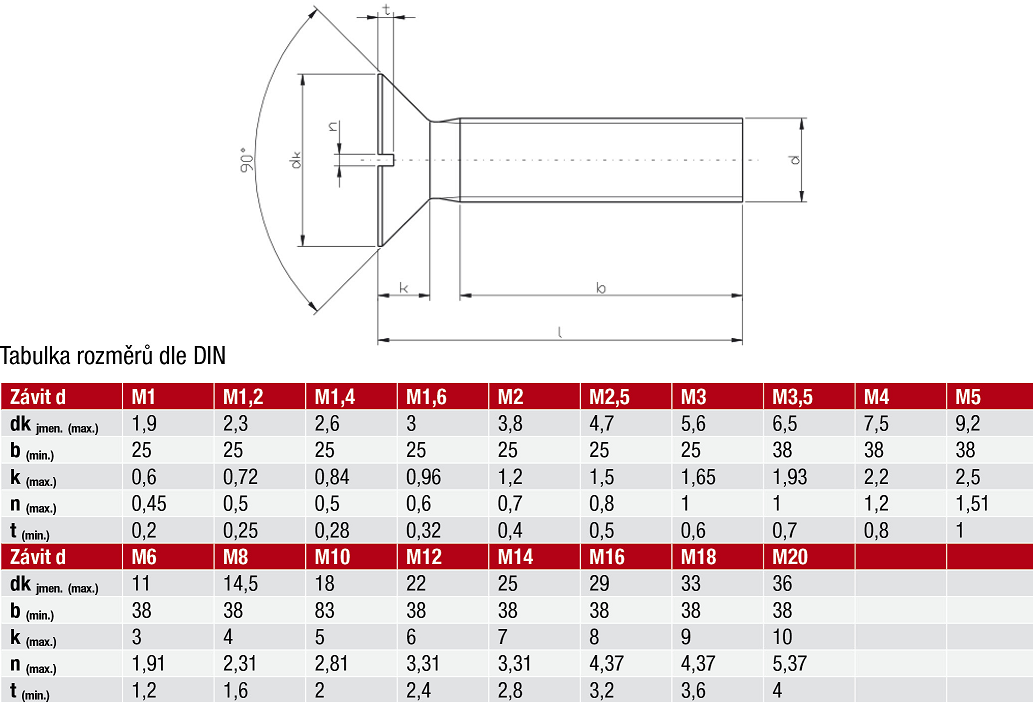 DIN 963 - Šrouby se zápustnou hlavou, Současná norma: DIN EN ISO 2009, Ekvivalentní normy: ISO 2009; CSN 021151; PN 82207; UNI 6109