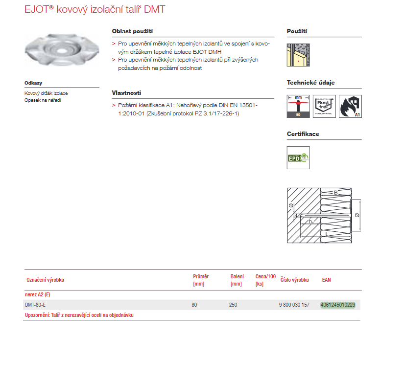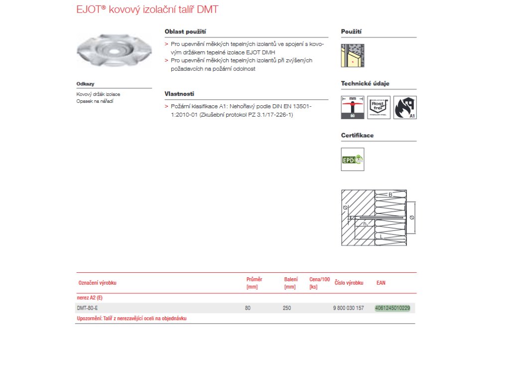 EJOT® Kovový izolační talíř DMT DMT-80-E nerez