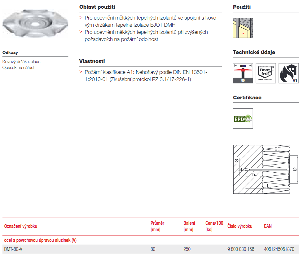 EJOT® kovový izolační talíř DMT DMT-80-V