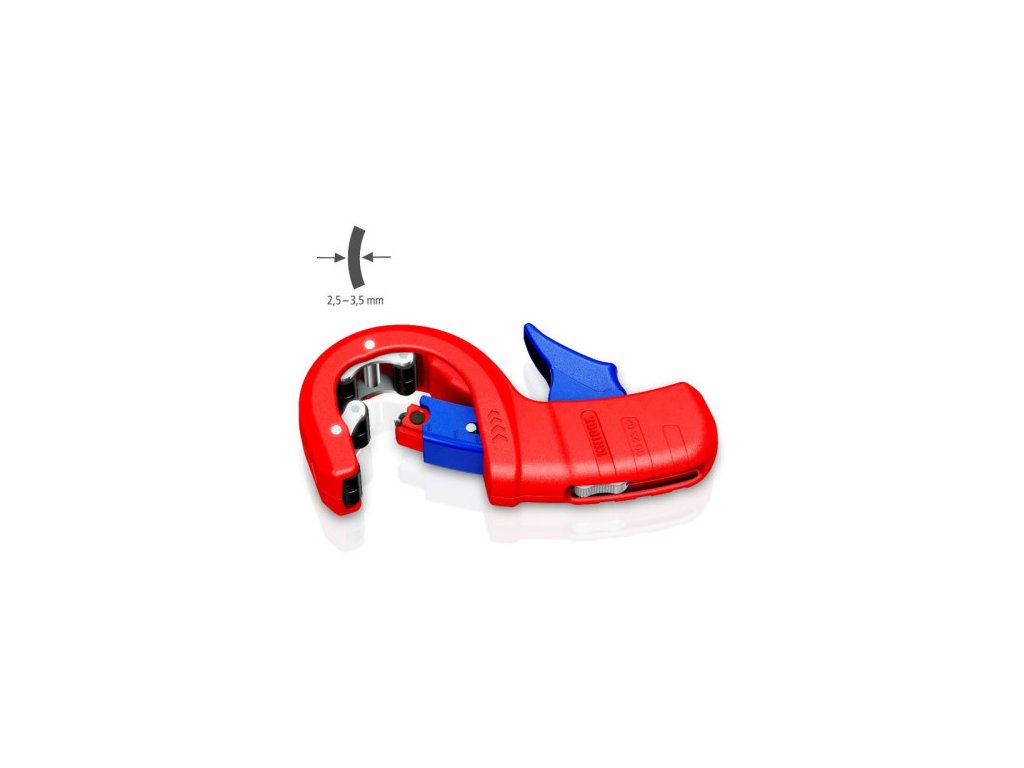 • řeže trubky z PVC a PP s tloušťkou stěny 2,5 - 3,5 mm • na všechny běžné plastové odpadní trubky až do Ø 50 mm • oboustranná vysoce kvalitní čepel (z materiálu pro kuličková ložiska) • jeden nástroj, tři průměry • řeže délky od 10 mm