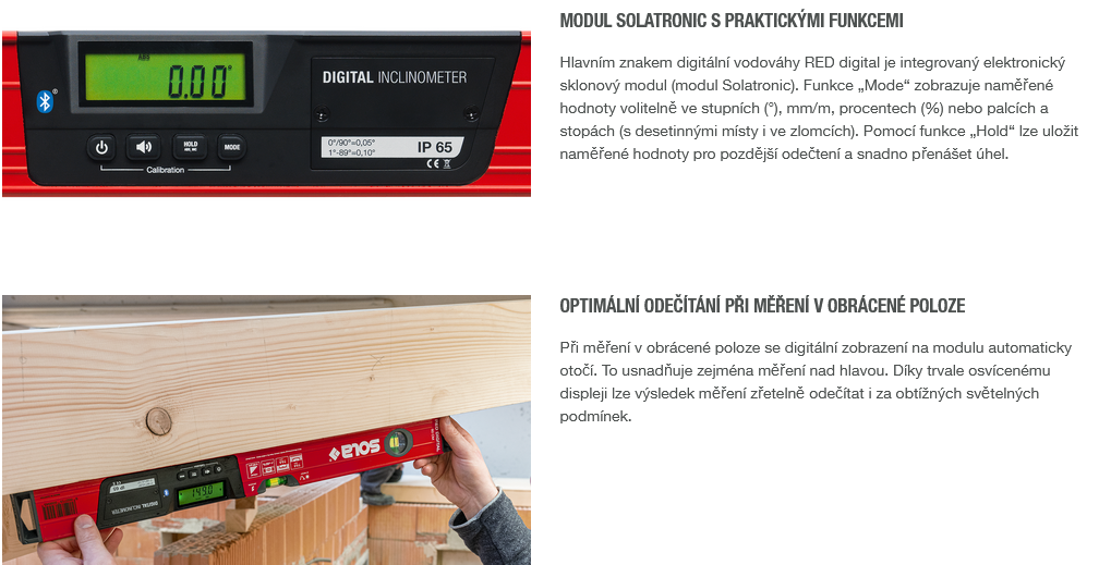 - Komfortní odečítání hodnot díky reverznímu zobrazení při měření v obrácené poloze
