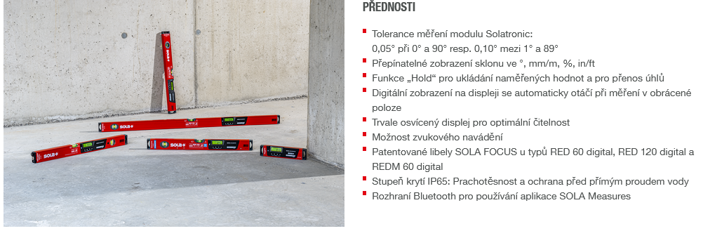 Digitální vodováha s rozhraním Bluetooth + sklonoměr, RED 60 digital, délka 600 mm, rozměr 59 x 27 mm, SOLA
