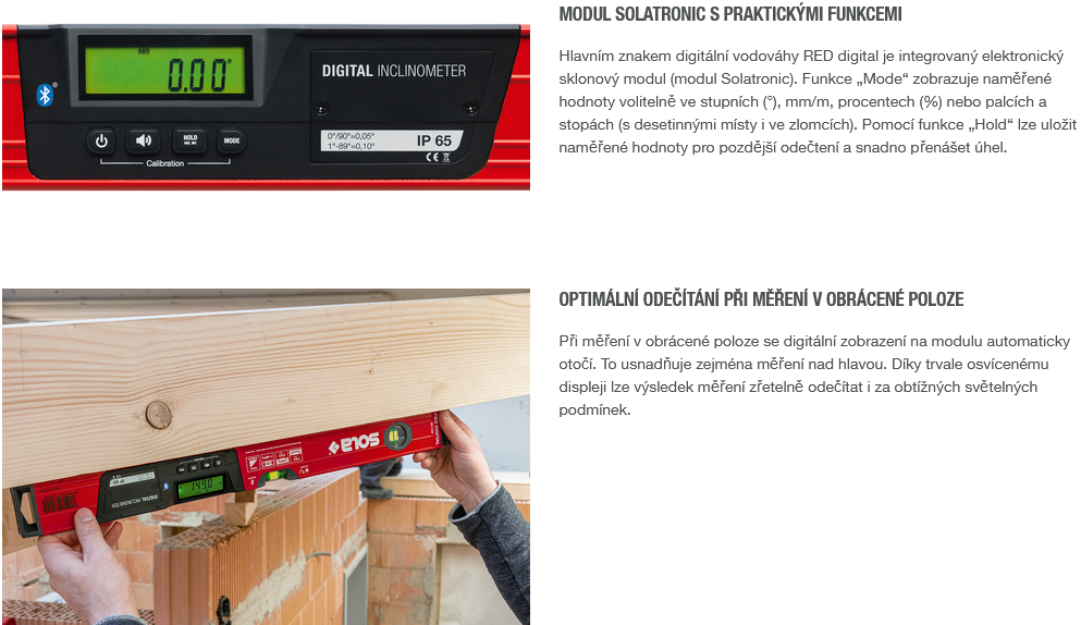 | Tolerance měření v obrácené poloze | 0,50 mm/m (0 029°) |