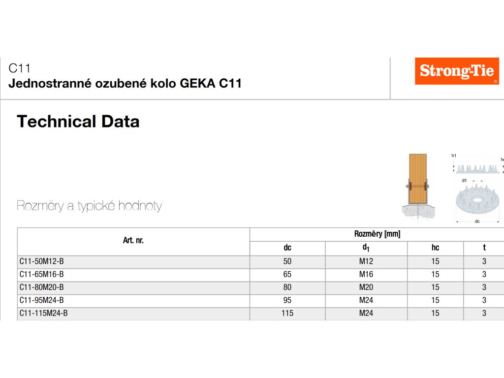 Varianta: GEKA spojka dřeva C11 - 115 jednostr. pozink. ( desk. hmoždinka )