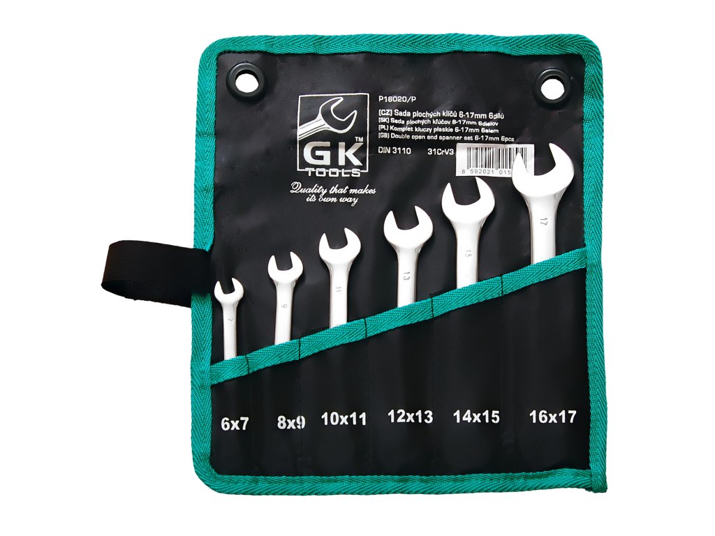GK TOOLS Sada plochých klíčů, chrom | 6-17 mm, 6 dílů, textilní obal