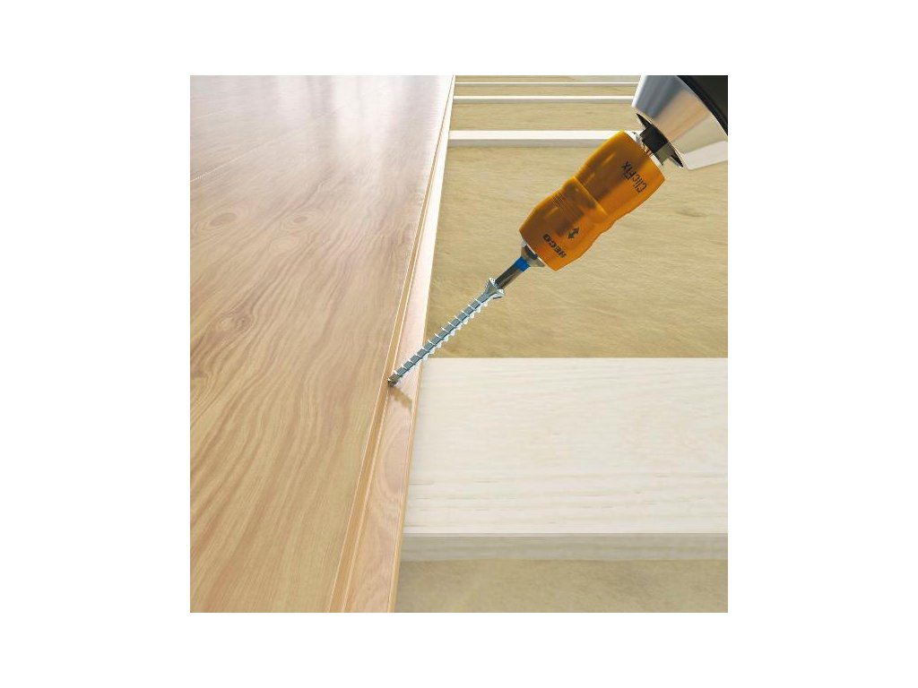 • HECO-TOPIX špička předvrtání je nyní zbytečné, snižuje riziko štípání dřeva a umožňuje úzké vzdálenosti hran a středu
