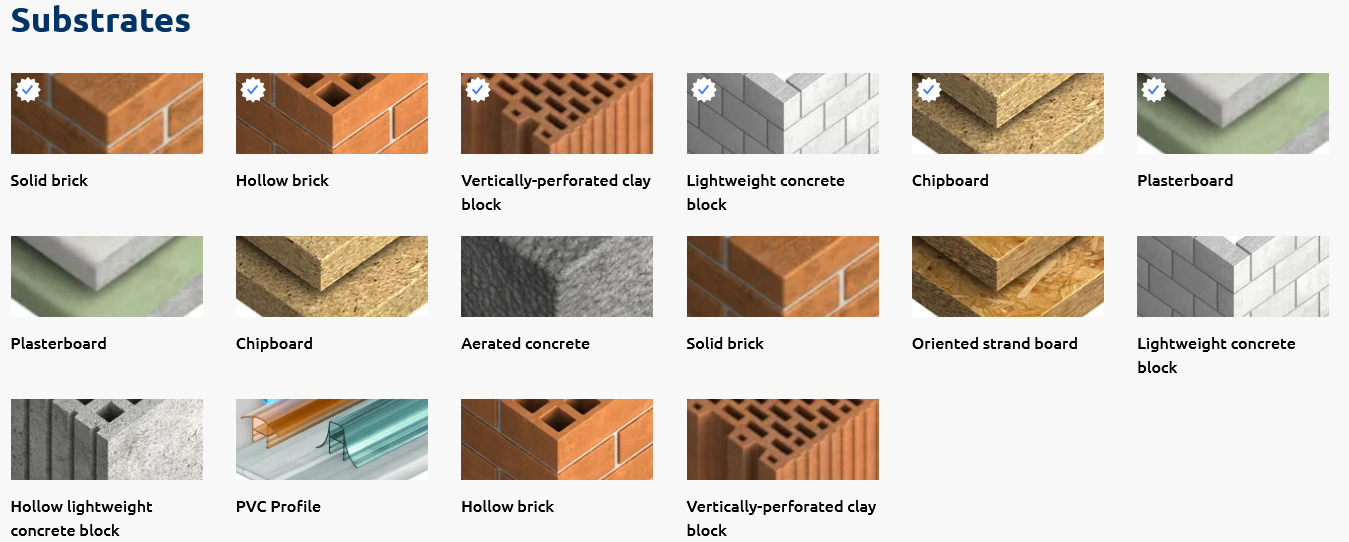 - Ideální připevnění pro otvory s nepravidelnými okrajemi otvoru a neznámým podkladem