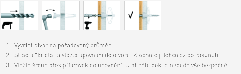 Hmoždinka do sádrokartonu Motýlek GL 8 mm s vrutem