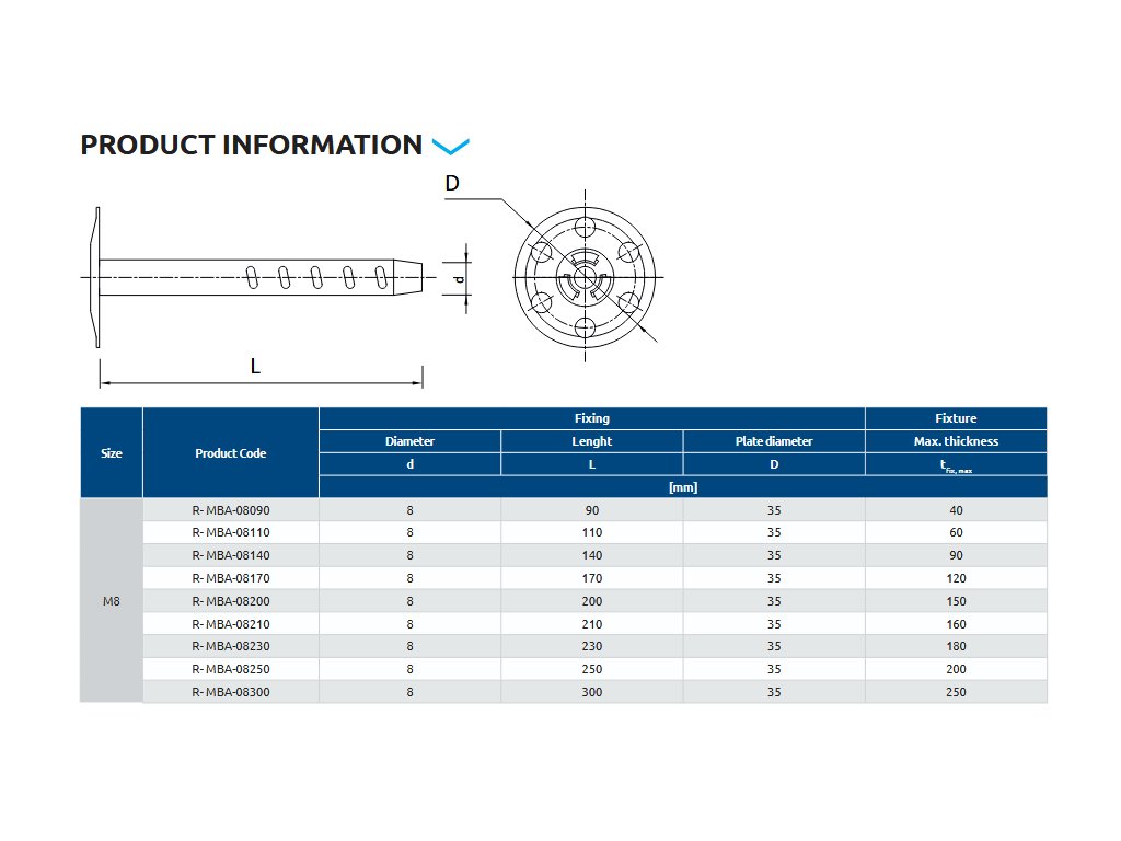 Hmoždinka fasádní kovová MBA