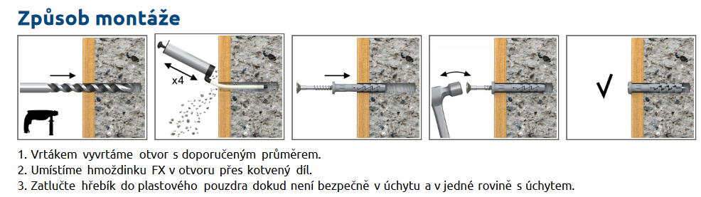 Aplikace • Dřevěné nebo kovové latě • Sádrokartonové konstrukce • Soklová lišta / zábradlí Dado • Kabelové svorky • Trubkové spony Základní materiály Schváleno pro použití v: • Beton • Plná cihla • Pevná vápenopísková cihla • Dutá vápenopísková cihla • Lehký betonový blok • Dutý lehký beton Blok • Pórobetonový blok