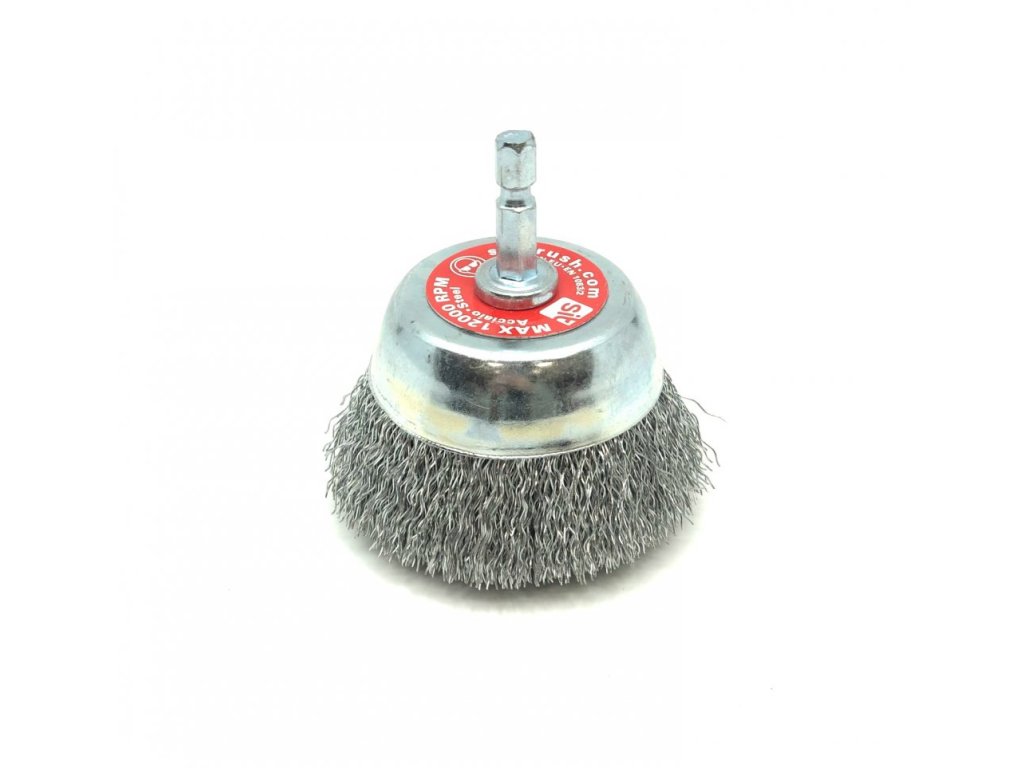 Hrncový kartáč kadeřavý T60 HEX 1/4" ocel 65 mm