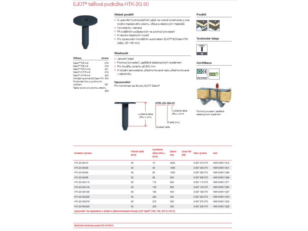 EJOT® talířová podložka HTK 2G 50 - teleskop