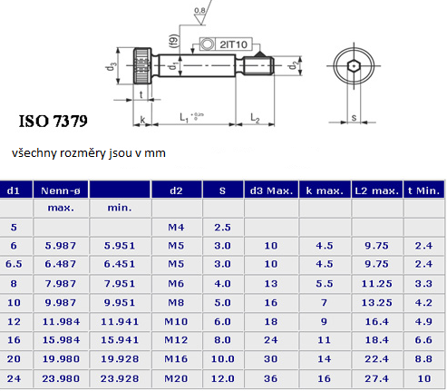 ISO 7379 - Lícované osazené šrouby s vnitřním 6hranem, Současná norma: ISO 7379, Ekvivalentní normy: CSN 021113