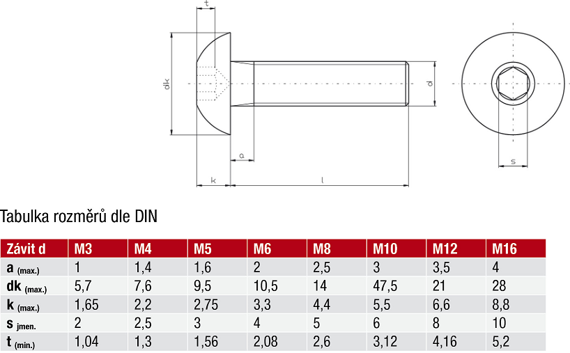 ISO 7380 inbus půlkulatá hlava vnitřní šestihran BUTTON ISO7380