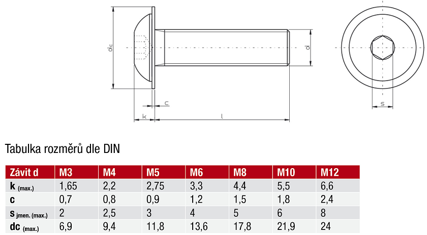 Vrut půlkulatá hlava široká TRESPO s drážkou TORX