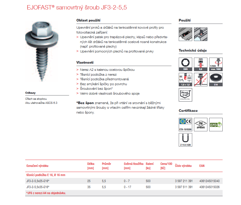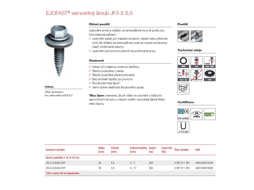 EJOFAST® samovrtný šroub JF3-2-5,5 s podložkou E16