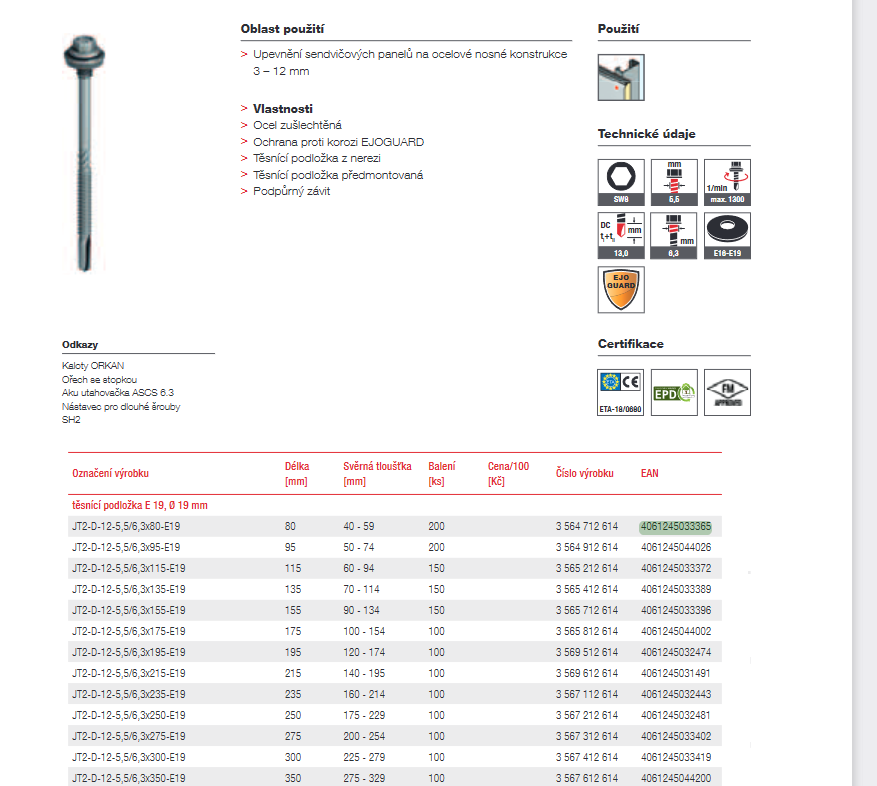 EJOT® samovrtný šroub JT2-D-12-5,5/6,3 EJOGUARD s podložkou E19