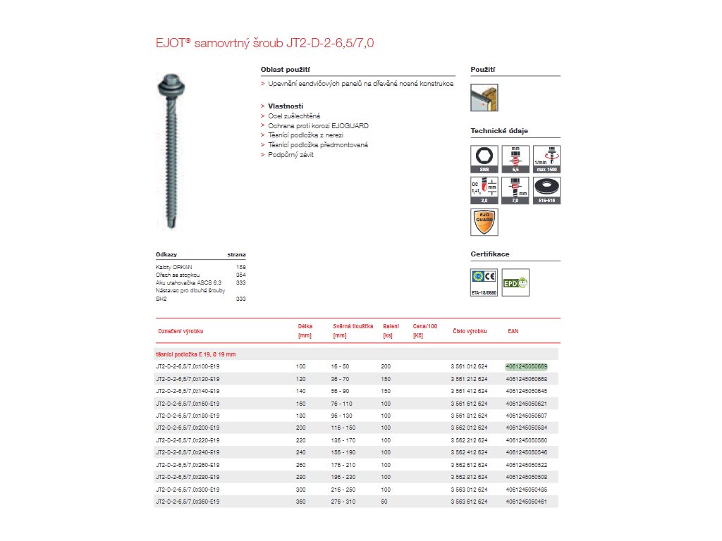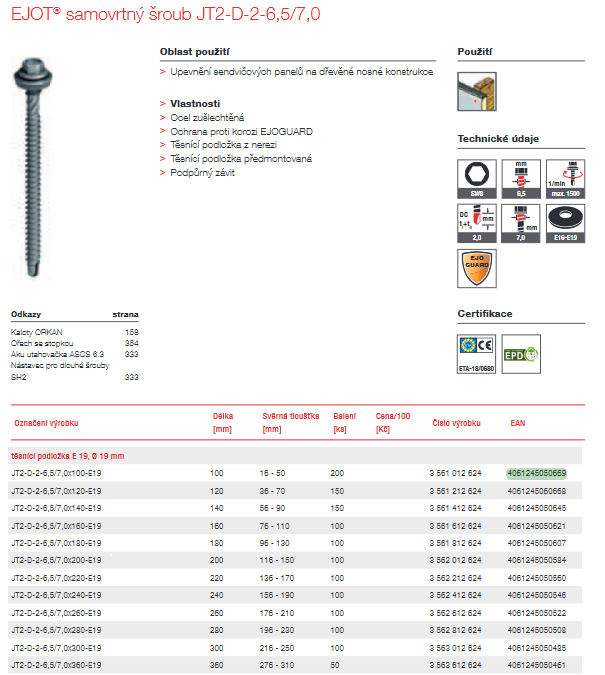 EJOT® samovtný šroub JT2-D-2-6,5/7,0 EJOGUARD s podložkou E19 mm