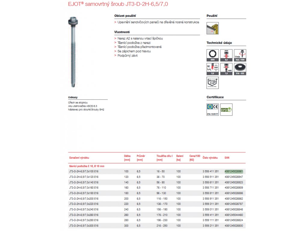 EJOT® samovrtný šroub JT3-D-2H-6,5/7,0 s podložkou E16