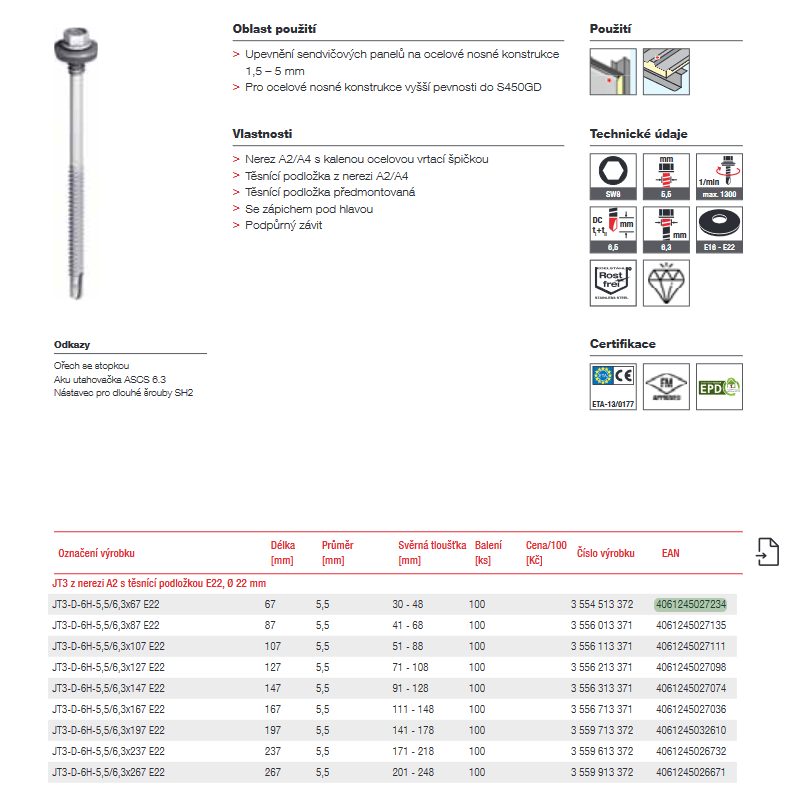 Varianta: JT3-D-6H-5,5/6,3x267 E22