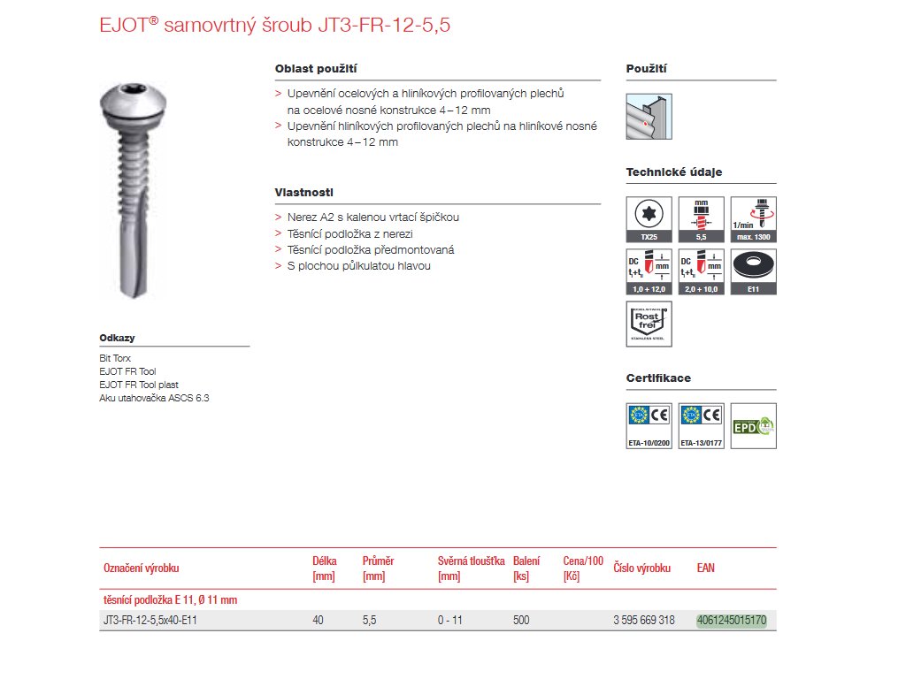 EJOT® samovrtný šroub JT3-FR-12-5,5 - 5,5x40 s podložkou E11