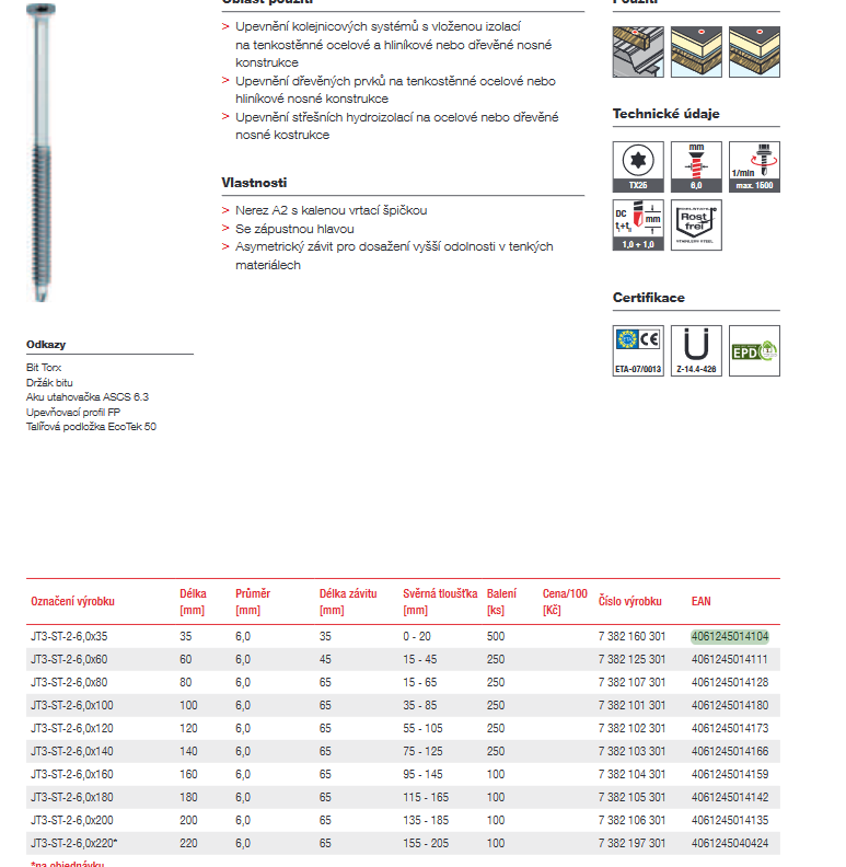 EJOT® samovrtný šroub JT3-ST-2-6,0