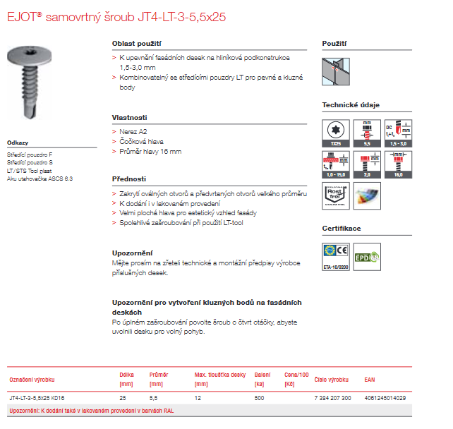 EJOT® samovrtný šroub nerez JT4-LT-3-5,5x25 KD16