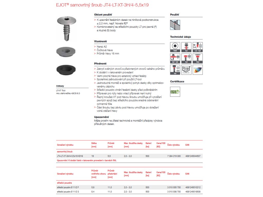EJOT® samovrtný šroub nerez JT4-LT-XT-3H/4-5.5x19 KD16