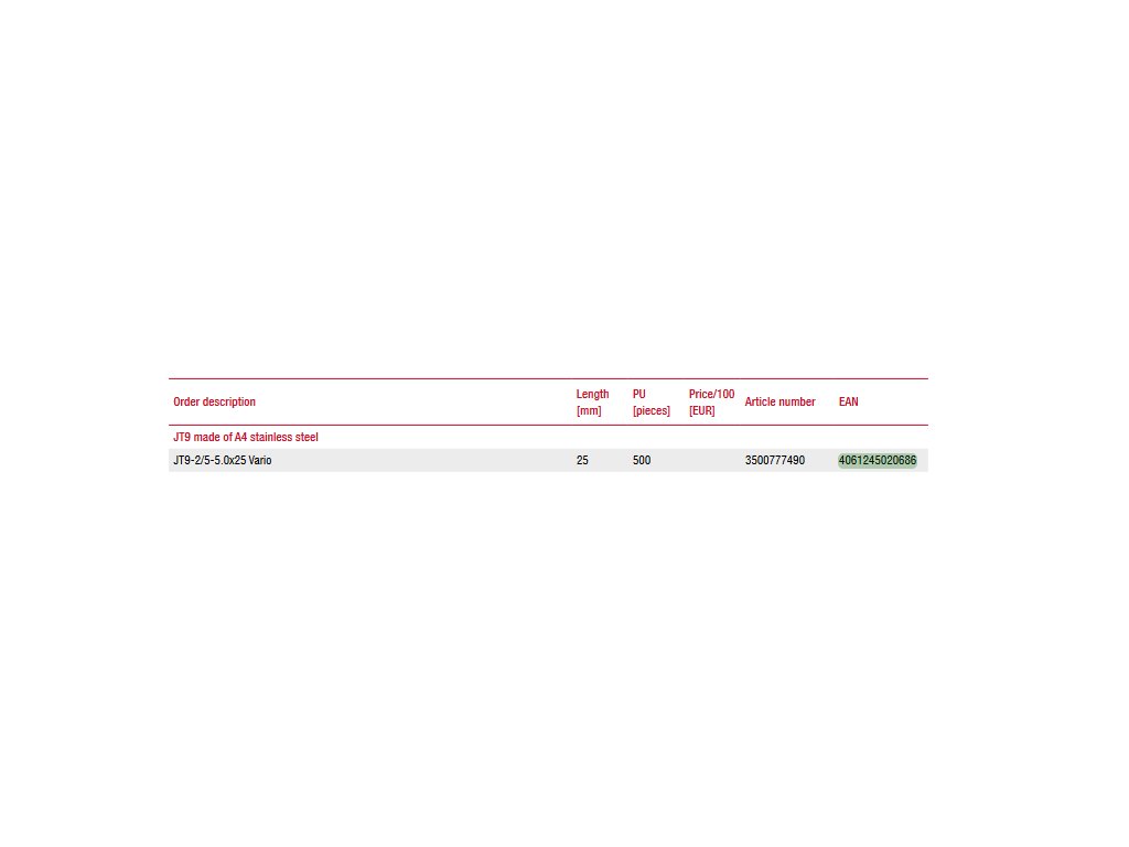 EJOT® samovrtný šroub JT9-2/5 5.0 VARIO - 5,0x25 Vario nerez A4