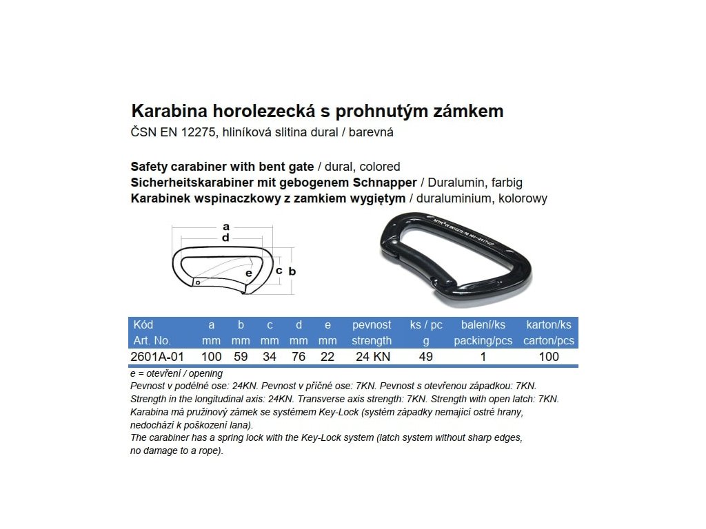 Karabina horolezecká s prohnutým zámkem 100mm Dural