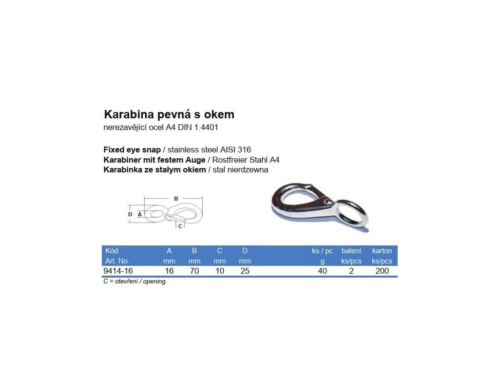 Karabina pevná s okem otočená, nerez A4