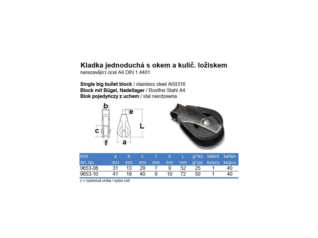 Kladka jednoduchá s okem, s kuličkovým ložiskem