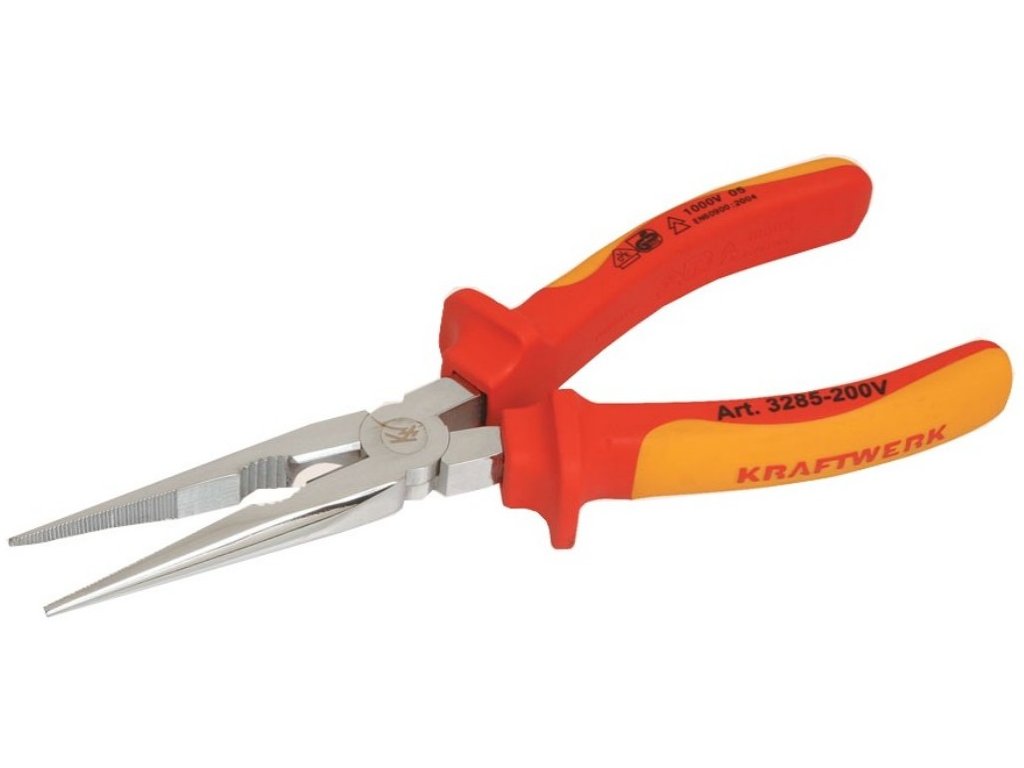 Kleště elektro rovné 200mm VDE standard .- elektro kleště se stříhačem, přímé, izolované VDE - pogumovaný povrch s protismykovými body - zmenšené a optimalizované chrániče kloubů - štíhlé rukojeti se speciálním rádiusem a ergonomicky zaoblenými hranami - kónické ukončení rukojetí pro pohodlnější vsouvání do pouzderDoplňkové parametry