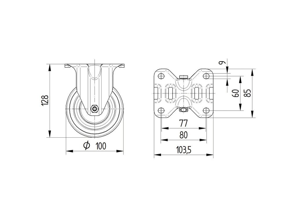 Kolečko antistatické 100mm, pevné, plotýnka, 3478XSP100P62