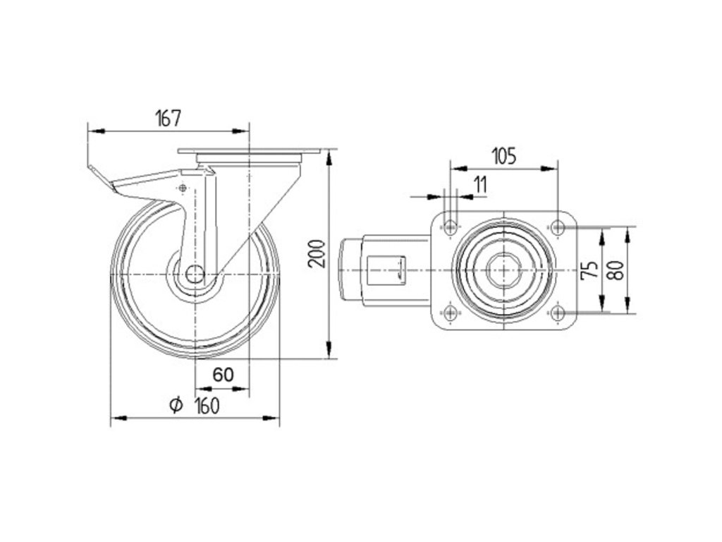 Kolečko ESD, 125mm, s brzdou, plotýnka, 3477ILP125P63 LW60 BH161