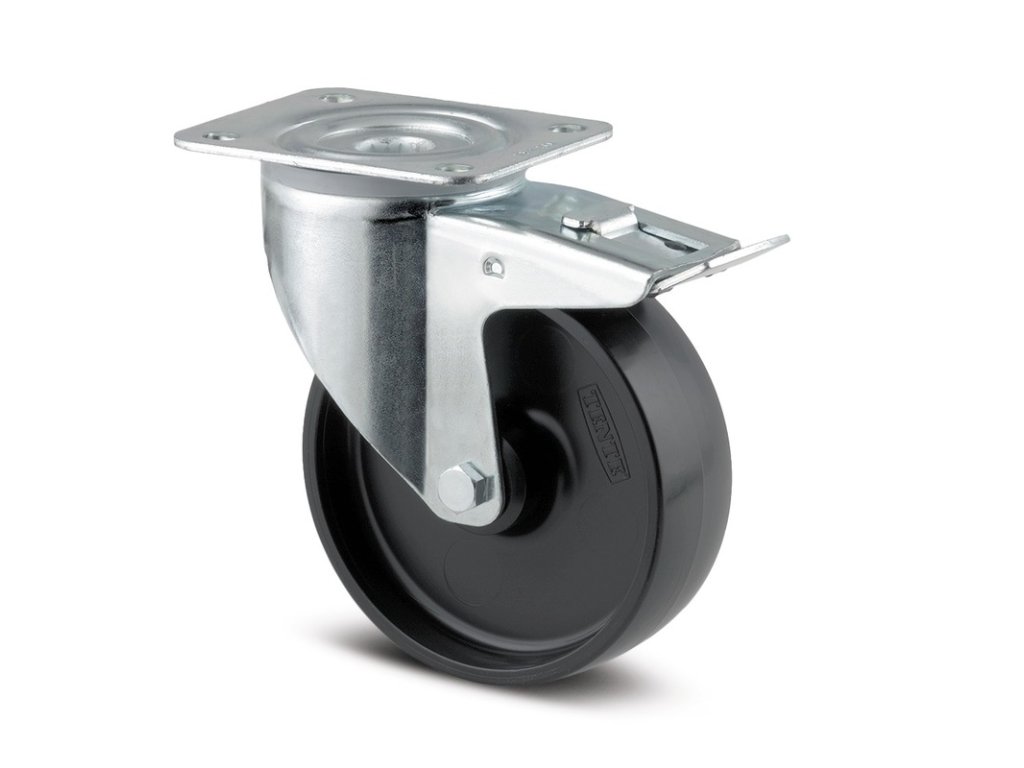 Kolečko ESD 125mm, s brzdou, plotýnka, 3477XOP125P63 LW60 BH161 - ESD