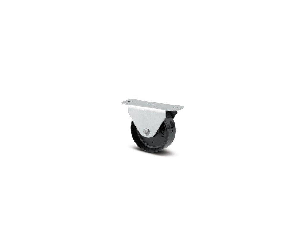 Pevné kolečko, Vidlice vyrobena z ocelového výlisku, zinkochromátováno, střed kola nýtován, uchycení s plotýnkou. Střed kolečka vyroben z polyamidu, kluzné uložení