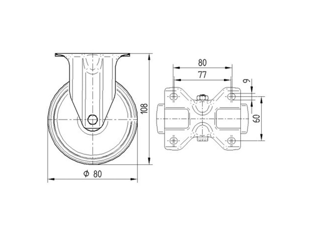 Kolečko pro lehká transportní zařízení 80mm, pevné, plotýnka, 3478PIR080P62