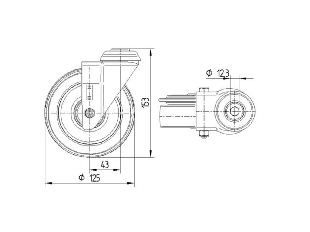 Kolečko pro nákupní vozíky 125mm, s brzdou, otvor pro čep, 2875ZIP125P30-13 Levé