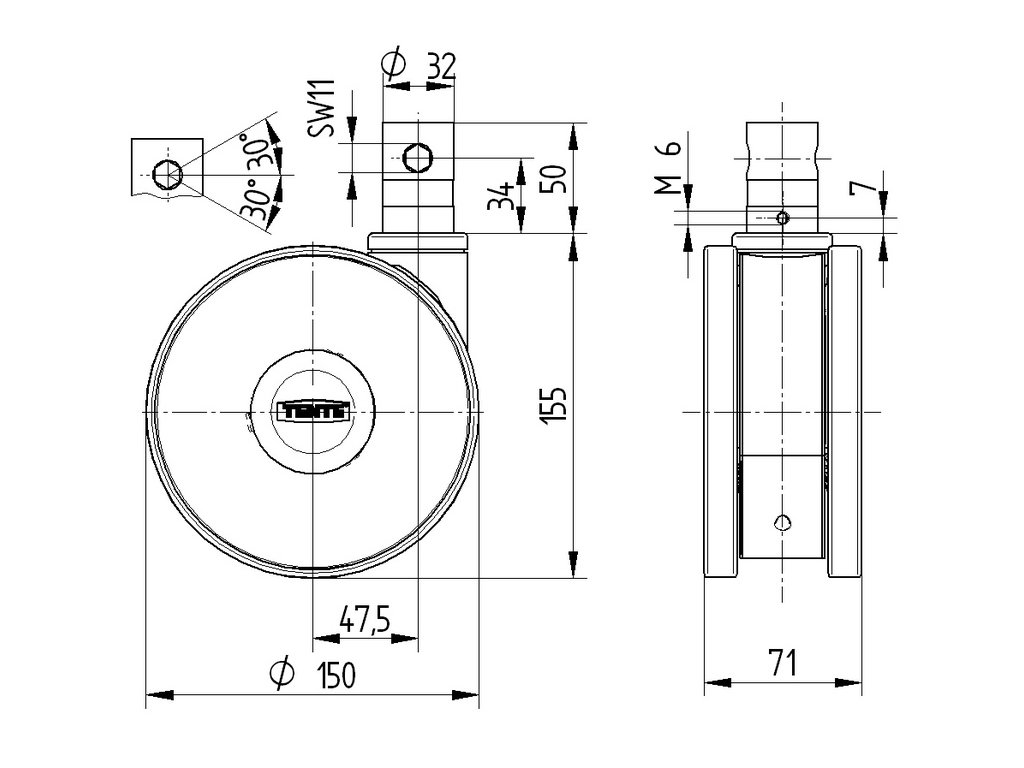| Průměr kolečka: | 150 mm |