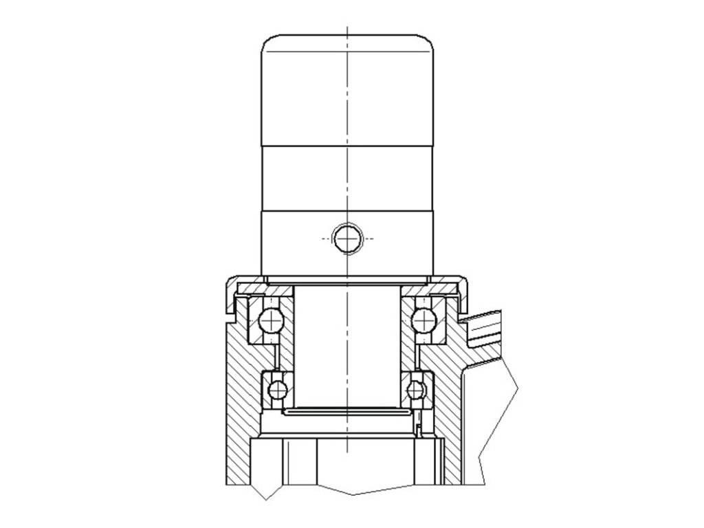 kuličkové ložisko v otočné hlavě, čep s excentrickou dírou s nákružkem,