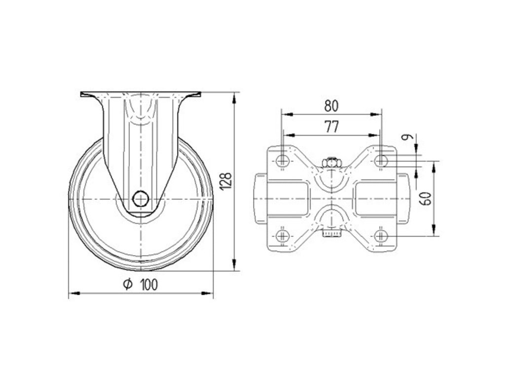 Kolečko pro transportní zařízení 100mm, pevné, plotýnka, 3478UOO100P62