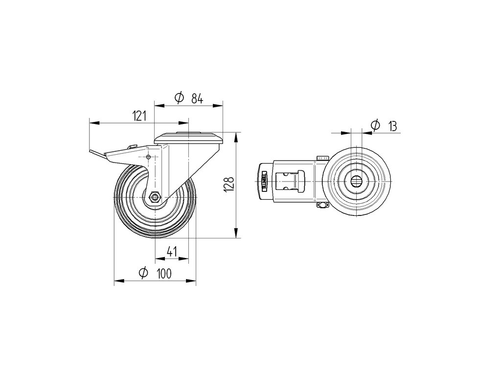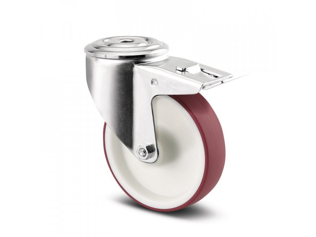 Kolečko pro transportní zařízení 100mm, s brzdou, otvor pro čep, 3477UAR100P30-13 červené