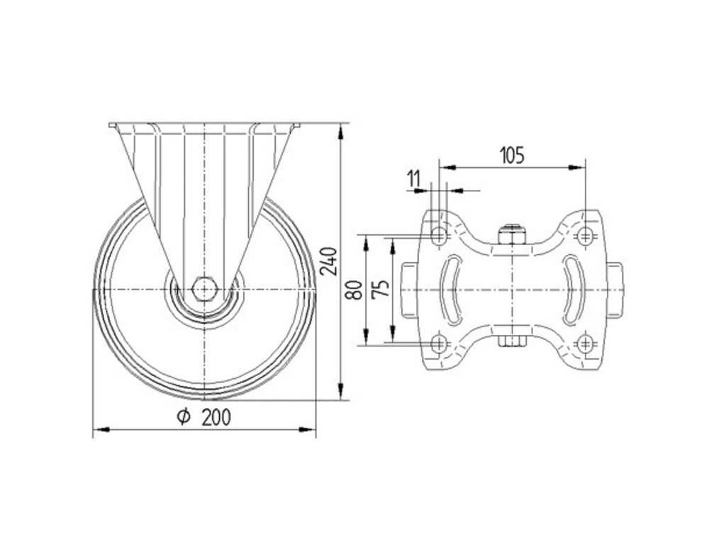 Kolečko pro transportní zařízení 200mm, pevné, plotýnka, 3478UOO200x50P63-J