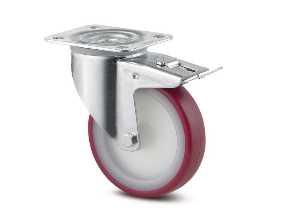 Kolečko pro transportní zařízení 200mm, s brzdou, plotýnka, 3477UAP200P63 červené