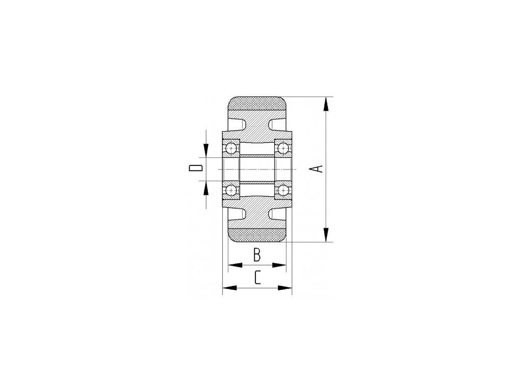 Střed kolečka vyroben z litiny, Běhoun: polyuretan, odlévaný, přesné kuličkové ložisko