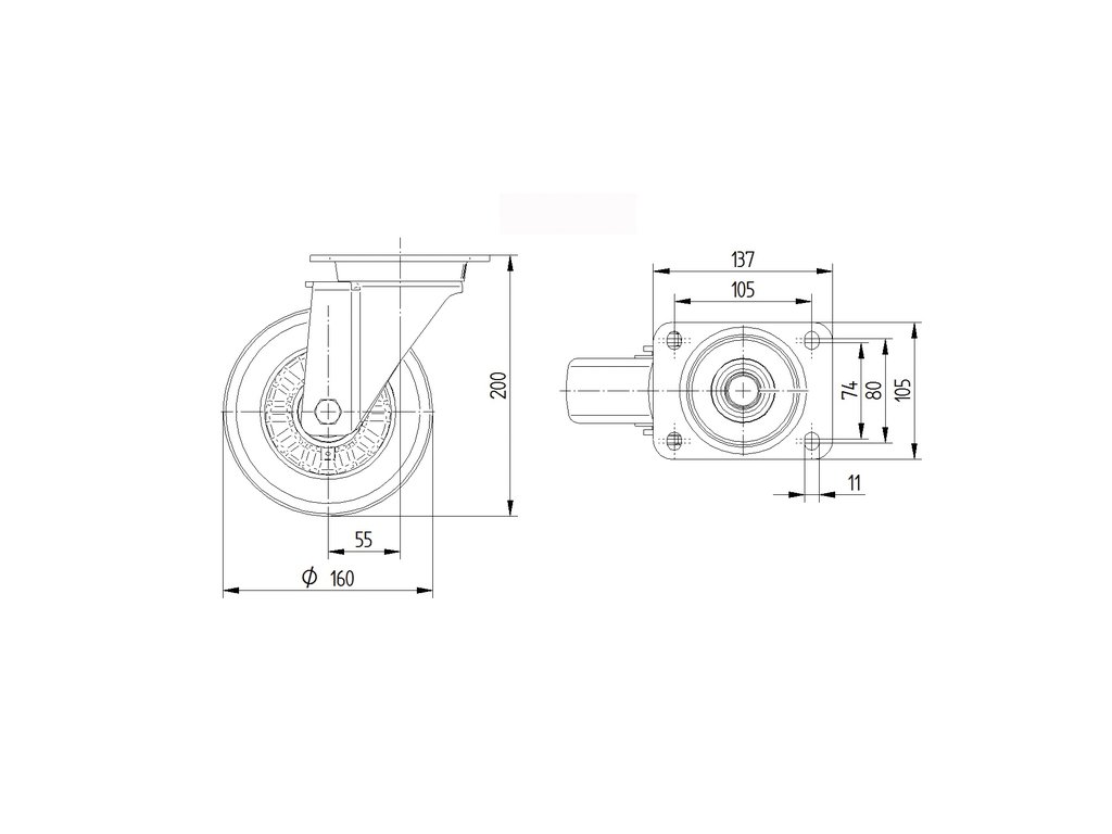 Kolečko pro vysoké zatížení 160mm, otočné, plotýnka, 3670ITP160P63 LW60 smart