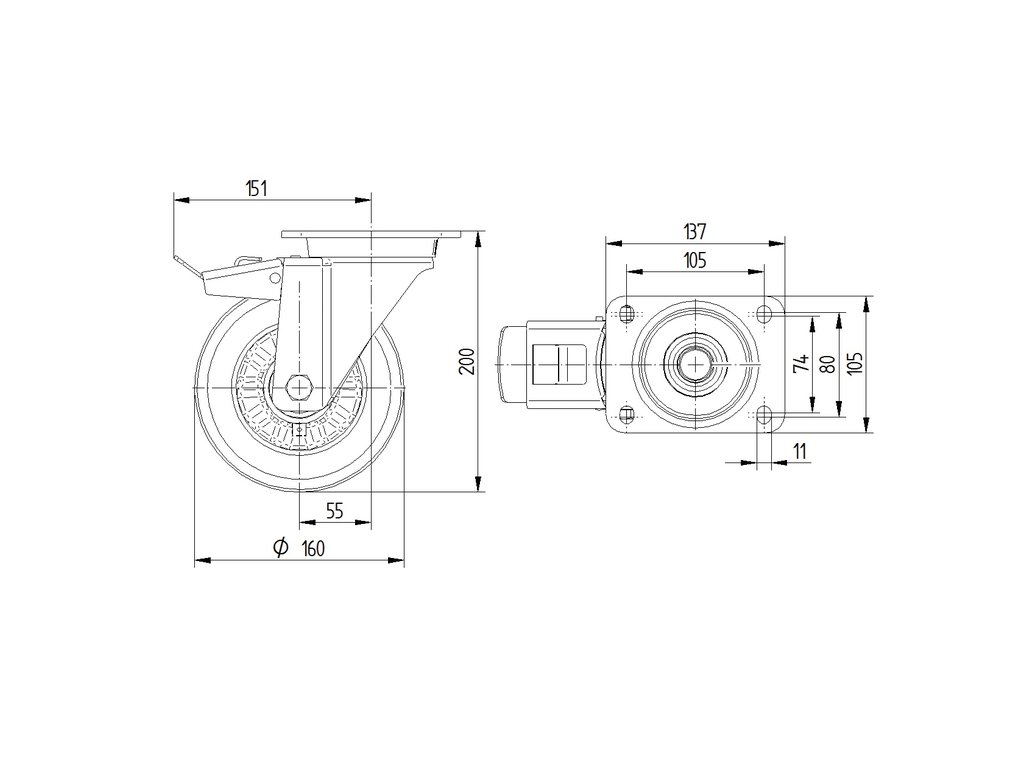 Kolečko pro vysoké zatížení 160mm, s brzdou, plotýnka, 3677ITP160P63 LW60 smart